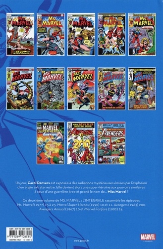 Carol Danvers, alias Miss Marvel, rencontre les Avengers pour la toute première fois ! Mystique, la mutante aux multiples visages, fait sa première apparition ! Carol fait équipe avec le Captain Marvel d'origine, Mar-Vell, face à Ronan l'Accusateur ! Et Miss Marvel change de costume ! L'héroïne de The Marvels poursuit ses aventures alors qu'elle ne portait pas encore le titre de Captain Marvel. Sous la houlette de Chris Claremont (qui l'intègrera ensuite à l'univers des X-Men), elle vit des histoires mythiques qui n'avaient pas été rééditées depuis les années 80 !