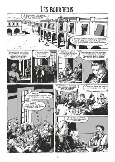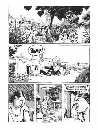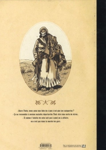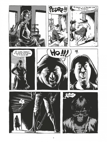 Quand Viva Zapata rencontre La Nuit des Morts-vivants. Mexique, début du XXe siècle. Une hacienda est subitement prise d'assaut par une horde d'étranges individus, des " calaveras ", ces figures écorchées issues du folklore mexicain, hébétées et muettes, qui ne semblent tenir debout que par la pulsion de meurtre qui les anime. Les survivants de l'attaque, jetés sur les routes, forment alors un groupe sans distinction de classes, de milieux, ou d'origines... même si les patrons tentent de demeurer ceux qui donnent les ordres. Ils n'ont alors pour seul langage commun que celui de la violence et de la lutte pour la survie. Reste à savoir s'ils vont devenir aussi sauvages que les monstres qui les poursuivent... Pierre Place, meilleur que jamais, propose un récit étouffant, rythmé, plein de suspense grâce à un découpage cinématographique virtuose et un dessin dont la personnalité expressionniste et dynamique accroche tout de suite le lecteur. Aussi macabre que réjouissant, Muertos est un divertissement haut de gamme qui rend tout autant hommage aux westerns mexicains qu'aux oeuvres horrifiques de critique sociale de George Romero.