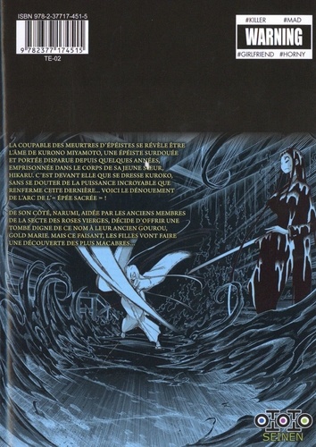 La coupable des meurtres d'épéistes se révèle être l'âme de Kurono Miyamoto, une épéiste surdouée et portée disparue depuis quelques années, emprisonnée dans le corps de sa jeune soeur, Hikaru. C'est devant elle que se dresse Kuroko, sans se douter de la puissance incroyable que renferme cette dernière... Voici le dénouement de l'arc de l'"épée sacrée" ! De son côté, Narumi, aidée par les anciens membres de la secte des roses vierges, décide d'offrir une tombe digne de ce nom à leur ancien gourou, Gold Marie, mais ce faisant, les filles vont faire une découverte des plus macabres...