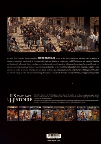 Tous les chemins mènent à Rome. Au sortir de la Première guerre mondiale, Benito Mussolini prend la tête d'un mouvement révolutionnaire et violent, le fascisme, regroupant les déçus de la victoire " mutilée " italienne. Ils aspirent au retour d'une " Grande Italie ". Il prend la tête du gouvernement en 1922 et impose une " révolution fasciste " en refondant entièrement le système politique et économique. Son grand dessein est de créer une Italie nouvelle, organisée et puissante avec à sa tête, un chef infaillible, le Duce (le "guide"). Il s'attache en parallèle a faire de Rome le centre du pouvoir et la nouvelle citeé idéale, conforme aux idéaux du fascisme afin de faire de la ville une véritable vitrine du régime et une capitale impériale. Davide Goy et Luca Blengino, avec l'historienne Catherine Brice, retracent la mise en place du Fascisme du point de vue de Rome, littéralement rebâtie par un Mussolini modelant le visage de cette ville éternelle à l'image du fascisme conquérant.