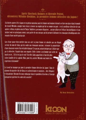Après Sherlock Holmes et Hercule Poirot, découvrez Mitsuko Hoshino, la première femme détective du Japon ! A la fin des années 20, le Japon est en pleine mutation, mais les femmes ont toujours du mal à se faire une place dans le monde du travail. Mitsuko a malgré tout réussi à trouver un emploi qui lui va comme un gant : c'est la meilleure détective de son agence, à Ginza, en plein coeur de Tokyo ! Adultères, personnes disparues... aucune affaire ne l'effraie. Son intelligence et son instinct sont ses principaux atouts, sans parler de son courage, qui lui permet d'affronter les remarques désobligeantes des tenants d'une société patriarcale. Lors d'une pause bien méritée dans un café, la jeune femme est abordée par un élégant serveur du nom de Saku, qui lui confie une étonnante mission : retrouver la propriétaire d'une chaussure ornée d'un véritable diamant ! Le garçon, autant intrigué par l'affaire que par la détective, l'épaule dans son enquête. Celle-ci mène à un homme qui cache un lourd secret... Et il n'est pas le seul ! En effet, Saku appartient à l'une des plus riches familles de la capitale. Mais, pour lui, assister Mitsuko vaut toutes les expériences du monde ! Le travail ne manque pas pour la première femme détective du Japon ! Sous le glamour du quartier chic de Ginza se cachent drames et surprises... Avec élégance et dynamisme, Natsumi Ito nous embarque dans le quotidien d'un duo à l'énergie contagieuse qui brise les codes de la société !