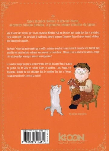 Après Sherlock et Hercule, découvrez Mitsuko, femme-détective ! Saku découvre avec surprise que, six ans auparavant, Mitsuko n'était pas détective, mais standardiste dans le prestigieux Tokyo Station Hotel ! C'est une affaire de fraude qui a amené le patron de l'agence de Ginza et la jeune femme à collaborer pour démasquer le coupable... A présent, c'est une tout autre enquête qui se profile : un homme aveugle et sa soeur tentent de connaître la fin d'un film muet auquel ils ont assisté enfants, seulement leurs souvenirs se contredisent... Mitsuko et son assistant arriveront-ils à remplir cette mission malgré les maigres indices à leur disposition ? Le travail ne manque pas pour la première femme détective du Japon ! Sous le glamour du quartier chic de Ginza se cachent drames et surprises... Avec élégance et dynamisme, Natsumi Ito nous embarque sur les pas d'un duo de briseurs de codes à l'énergie contagieuse !