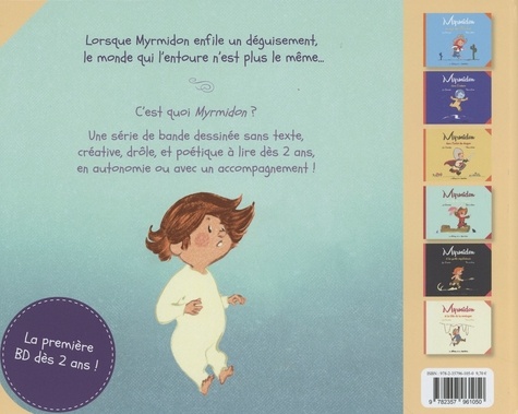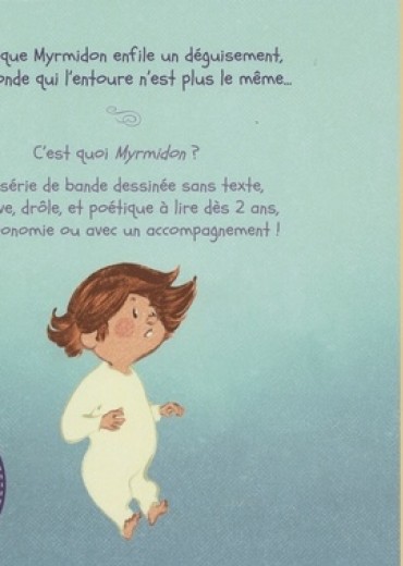 Lorsque Myrmidon enfile un déguisement, le monde qui l'entoure n'est plus le même... C'est quoi Myrmidon ? Une série de bande dessinée sans texte, créative, drôle, et poétique à lire dès 2 ans, en autonomie ou avec un accompagnement !