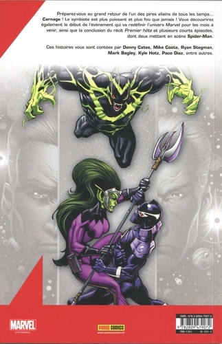Préparez-vous au grand retour de l'un des pires vilains de tous les temps... Carnage ! Le symbiote est plus puissant et plus fou que jamais ! Vous découvrirez également le début de l'événement qui va redéfinir l'univers Marvel pour les mois à venir, ainsi que la conclusion du récit Premier hôte et plusieurs courts épisodes, dont deux mettant en scène Spider-Man. Ces histoires vous sont contées par Donny Cates, Mike Costa, Ryan Stegman, Mark Bagley, Kyle Hotz, Paco Diaz, entre autres.