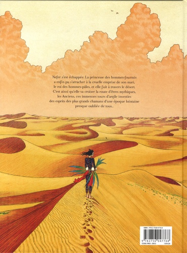 Nefer s'est échappée. La princesse des Hommes fourmis a enfin pu s'arracher à la cruelle emprise de son mari, le roi des Hommes pâles, et elle fuit à travers le désert. C'est ainsi qu'elle va croiser la route d'êtres mythiques, les Anciens, ces immenses tours d'argile investies des esprits des plus grands chamans d'une époque si lointaine qu'elle est presque effacée de la mémoire des hommes.