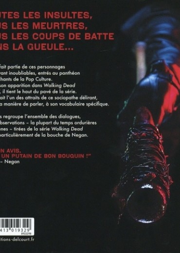 Depuis ses débuts dans Walking Dead tome 17, et grâce à son incarnation dans la série TV éponyme, Negan s'est imposé comme l'un des incontournables méchants les plus aimés - mais aussi les plus haïs -, de la pop culture, grâce à son humour aussi grinçant que morbide, ses tendances sociopathes et un langage particulièrement relevé. Cet ouvrage collecte et regroupe les jurons, les insultes et toutes les expressions favorites de ce salopard de Negan, accompagnées de diverses anecdotes et de statistiques.