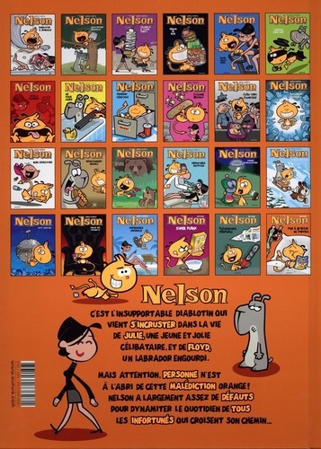 Nelson, c'est ce petit diablotin orange à l'apparence tout à fait angélique qui pourrit la vie de Julie, une jeune et jolie célibataire, et de Floyd, un labrador engourdi, pour le plus grand bonheur de centaines de milliers de lecteurs. Rappelez-vous : après le vol d'un rouleau de papier toilette au bureau, Julie se voit condamnée à accueillir, sans possibilité de retour à l'expéditeur, un petit diable relativement inoffensif... mais hyper doué pour les catastrophes quotidiennes ! Créé en 2001 dans le quotidien suisse Le Matin, le petit diablotin orange de Bertschy en est vite devenu l'incontournable mascotte. A ce jour, Nelson a vécu plus de 4 000 strips. Et ça ne fait que commencer...