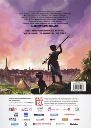 Un nuage empoisonné s'est répandu sur terre. Seuls quelques adolescents n'ont pas été exterminés par le cataclysme. Alixe vit au Louvre ("le Château") avec d'autres privilégiés, tandis que Zyzo tente de survivre en habitant la tour Eiffel ("le Tipi") avec son clan. Mais lorsque les animaux sont empoisonnés, la nourriture vient à manquer à ceux du Tipi. Pour eux, aucun doute, les enfants du Château sont coupables. La guerre va être déclarée ! Zyzo et Alixe parviendront-ils à l'éviter, tout en sauvant les membres de leur clan ? Age : à partir de 10 ans