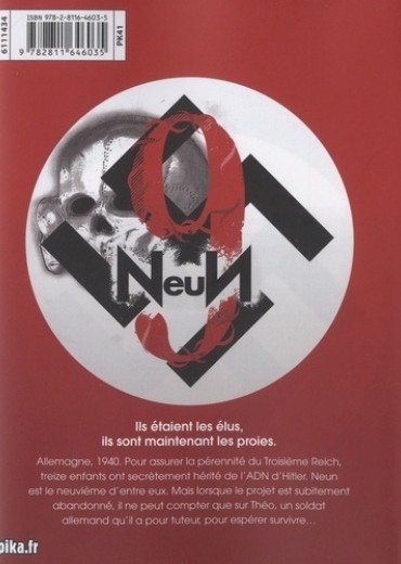 Ils étaient les élus, ils sont maintenant les proies. Allemagne, 1940. Pour assurer la pérennité du Troisième Reich, treize enfants ont secrètement hérité de l'ADN d'Hitler. Neun est le neuvième d'entre eux. Mais lorsque le projet est subitement abandonné, il ne peut compter que sur Théo, un soldat allemand qu'il a pour tuteur, pour espérer survivre...