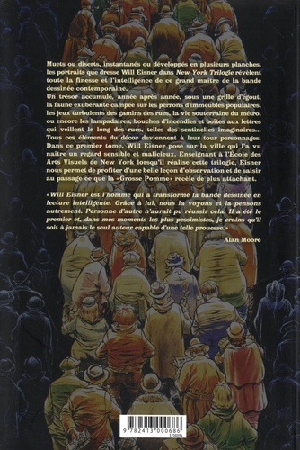 Muets ou diserts, instantanés ou développés en plusieurs planches, les portraits que dresse Will Eisner dans New York Trilogie révèlent toute la finesse et l'intelligence de ce grand maître de la bande dessinée contemporaine. Un trésor accumulé, année après année, sous une grille d'égout, la faune exubérante campée sur les perrons d'immeubles populaires, les jeux turbulents des gamins des rues, la vie souterraine du métro, ou encore les lampadaires, bouches d'incendies et boîtes aux lettres qui veillent le long des rues, telles des sentinelles imaginaires... Tous ces éléments du décor deviennent à leur tour personnages. Dans ce premier tome, Will Eisner pose sur la ville qui l'a vu naître un regard sensible et malicieux. Enseignant à l'Ecole des Arts Visuels de New York lorsqu'il réalise cette trilogie, Eisner nous permet de profiter d'une belle leçon d'observation et de saisir au passage ce que la "Grosse Pomme" recèle de plus attachant.