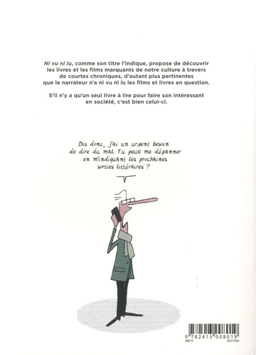Découvrez les livres et les films marquants de notre époque à travers de courtes chroniques, d'autant plus pertinentes que le narrateur n'a ni vu ni lu les films et livres en question ! Qui n'a jamais claironné sur les réseaux sociaux qu'il déteste tel film ou tel livre qu'il n'a ni vu, ni lu. Mazurie propose d'en faire un livre, où il décortique, avec justesse et un soupçon de mauvaise foi, des oeuvres marquantes qu'il n'a ni vues, ni lues. Cela permet de briller en société, de critiquer, arguments à l'appui, les films et livres dont tout le monde parle et qu'ils n'auront ni vus, ni lus.