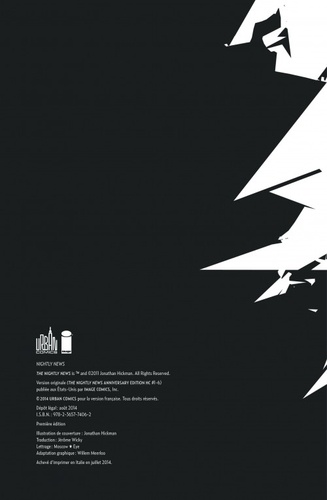 Après le surprenant Pax Romana, Urban Indies vous propose la première œuvre de Jonathan Hickman, auteur complet de cette violente satire des médias qui emprunte autant aux études du sociologue Noam Chomsky qu'à un manuel de guérilla urbaine. Un récit avec lequel Hickman a fait une entrée spectaculaire dans le petit monde tranquille des comics ! Une organisation terroriste, la Première Eglise de la Fraternité de la VOIX, planifie l'assassinat de la caste des journalistes (et ceux de la FOX en particuliers). Endoctrinés et déterminés, les membres de cette secte ont juré de faire taire à jamais le mensonge que diffusent à longueur de journée les médias. Un mensonge qui, de bouche à oreille, se propage jusqu'à être intégré comme fait et vérité. Un mensonge qui tient la population en laisse.