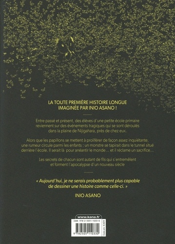 " Il faut avoir une volonté forte. Encore plus forte ! " Entre passé et présent, des élèves d'une petite école primaire reviennent sur des événements tragiques qui se sont déroulés dans la plaine de Nijigahara, près de chez eux. Les rumeurs qui circulent entre les enfants, le monstre dans le tunnel, les secrets de chaque famille, la prolifération anormale de papillons... Les fils de chaque histoire s'entremêlent pour former l'Apocalypse d'un nouveau siècle. Un recueil one-shot signé Inio Asano.