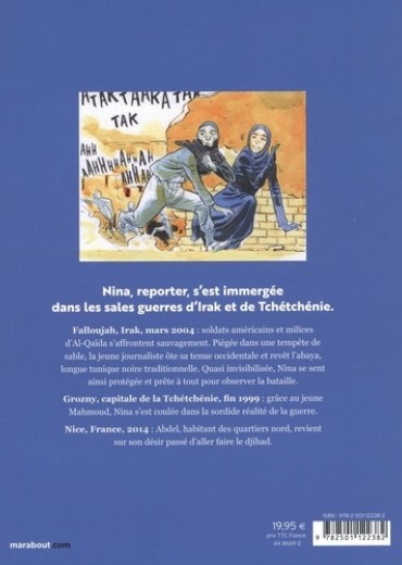 Nina, reporter, s'est immergée dans les sales guerres d'Irak et de Tchétchénie. Falloujah, Irak, mars 2004 : soldats américains et milices d'Al-Qaïda s'affrontent sauvagement. Piégée dans une tempête de sable, la jeune journaliste ôte sa tenue occidentale et revêt l'abaya, longue tunique noire traditionnelle. Quasi invisibilisée, Nina se sent ainsi protégée et prête à tout pour observer la bataille. Grozny, capitale de la Tchétchénie, fin 1999 : grâce au jeune Mahmoud, Nina s'est coulée dans la sordide réalité de la guerre. Nice, France, 2014 : Abdel, habitant des quartiers nord, revient sur son désir passé d'aller faire le djihad.
