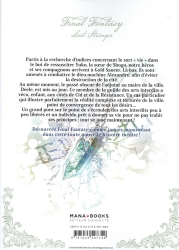 Partis à la recherche d'indices concernant le sort "vie" dans le but de ressusciter Yuko, la soeur de Shogo, notre héros et ses compagnons arrivent à Gold Saucer. Là-bas, ils sont amenés à combattre le dieu-machine Alexandre, afin d'éviter la destruction de la cité. Au même moment, le passé obscur de l'adjoint au maire de la ville, Deele, est mis au jour. Ce membre de la guilde des arts interdits a vécu, enfant, aux côtés de Cid et de la Résistance. Un cas particulier qui illustre parfaitement la réalité complexe et torturée de la ville, point de convergence de tous les désirs... Un grand pont sur le point de s'écrouler, des arts interdits peu à peu libérés et un individu prêt à donner sa vie pour ne pas trahir ses principes : tout se joue maintenant ! Découvrez Final Fantasy comme jamais auparavant dans cette toute lonvelle histoire inédite !