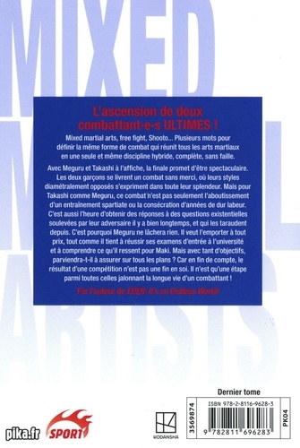 Avec Meguru et Takashi à l'affiche, la finale promet d'être spectaculaire. Les deux garçons se livrent un combat sans merci, où leurs styles diamétralement opposés s'expriment dans toute leur splendeur. Mais pour Takashi comme Meguru, ce combat n'est pas seulement l'aboutissement d'un entraînement spartiate ou la consécration d'années de dur labeur. C'est aussi l'heure d'obtenir des réponses à des questions existentielles soulevées par leur adversaire il y a bien longtemps, et qui les taraudent depuis. C'est pourquoi Meguru ne lâchera rien. Il veut l'emporter à tout prix, tout comme il tient à réussir ses examens d'entrée à l'université et à comprendre ce qu'il ressent pour Maki. Mais avec tant d'objectifs, parviendra-t-il à assurer sur tous les plans ? Car en fin de compte, le résultat d'une compétition n'est pas une fin en soi. Il n'est qu'une étape parmi toutes celles jalonnant la longue vie d'un combattant !