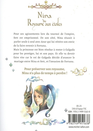 J'ai pris ma décision. On attaquera Fortuna avant l'arrivée du printemps. Pour ses agissements lors du tournoi de l'empire, Sett est emprisonné. De son côté, Nina réussit à parler seule à seul avec Azur qui lui réitère son envie de la faire revenir à Fortuna. Mais la princesse est bien résolue à rester à Galgada pour les protéger, lui et son pays. Et elle va devoir faire vite car le roi de Galgada décide d'avancer le mariage entre Nina et Sett, et l'invasion de Fortuna.