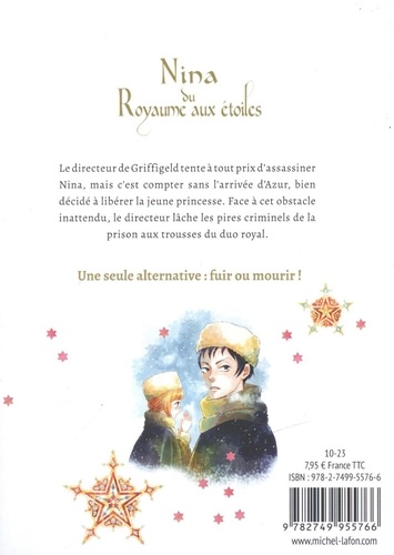 Prix Kodansha du meilleur shojo 2022 Prix Japannecy 2023 Le destin d'une jeune orpheline devenue princesse. Le directeur de Griffigeld tente à tout prix d'assassiner Nina, mais c'est compter sans l'arrivée d'Azur, bien décidé à libérer la jeune princesse. Face à cet obstacle inattendu, le directeur lâche les pires criminels de la prison aux trousses du duo royal. Une seule alternative : fuir ou mourir !