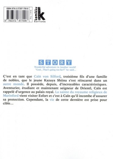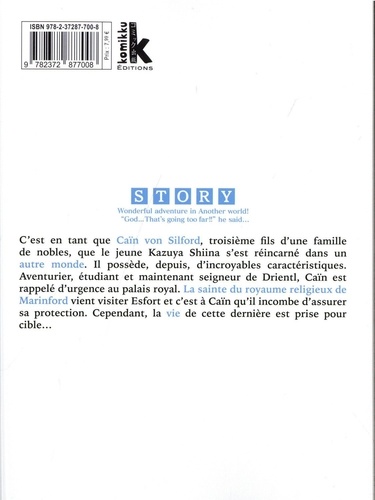 C'est en tant que Caïn von Silford, troisième fils d'une famille de nobles, que le jeune Kazuya Shiina s'est réincarné dans un autre monde. Il possède, depuis, d'incroyables caractéristiques. Aventurier, étudiant et maintenant seigneur de Drientl, Caïn est rappelé d'urgence au palais royal. La sainte du royaume religieux de Marinford vient visiter Esfort et c'est à Caïn qu'il incombe d'assurer sa protection. Cependant, la vie de cette dernière est prise pour cible...