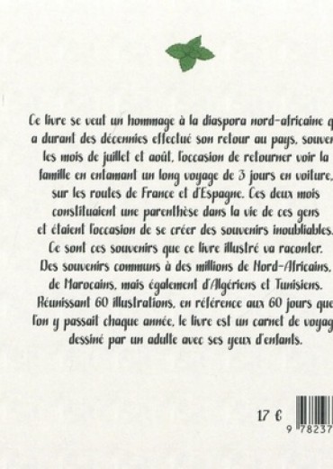 Ce livre se veut un hommage à la diaspora nord-africaine qui a durant des décennies effectué son retour au pays, souvent les mois de juillet et août, l'occasion de retourner voir la famille en entamant un long voyage de 3 jours en voiture, sur les routes de France et d'Espagne. Ces deux mois constituaient une parenthèse dans la vie de ces gens et étaient l'occasion de se créer des souvenirs inoubliables. Ce sont ces souvenirs que ce livre illustré va raconter. Des souvenirs communs à des millions de Nord-Africains, de Marocains, mais également d'Algériens et Tunisiens. Réunissant 60 illustrations, en référence aux 60 jours que l'on y passait chaque année, le livre est un carnet de voyage dessiné par un adulte avec ses yeux d'enfants.