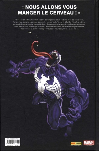 Né de l'union entre un humain assoiffé de vengeance et un costume doué de conscience, Venom n'est pas un personnage comme les autres. Tout d'abord lié à Spider-Man, le symbiote au passé obscur a ensuite engendré divers descendants et a vécu de nombreuses aventures, aussi bien du côté du mal que du bien. Ce volume rassemble des histoires soigneusement sélectionnées et commentées pour tout savoir sur ce symbiote et ses hôtes.