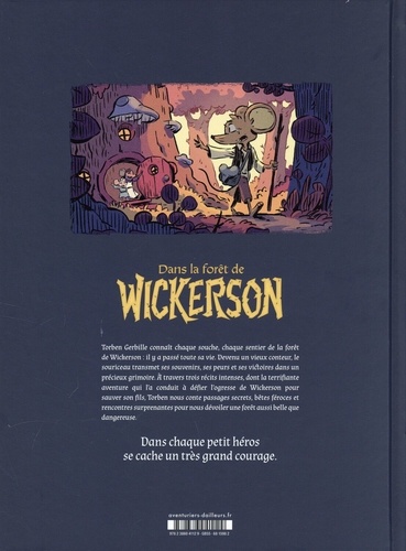 Torben Gerbille connaît chaque souche, chaque sentier de la foret de Wicherson : il y a passé toute sa vie. Devenu un vieux conteur, le souriceau transmet ses souvenirs, ses peurs et ses victoires dans un précieux grimoire.A travers trois récits intenses, dont la terrifiante aventure qui l'a conduit à défier l'ogresse de Wickerson pour sauver son fils, Torben nous conte passages secrets, bêtes féroces et rencontres surprenantes pour nous dévoiler une forêt aussi belle que dangereuse. Dans chaque petit héros se cache un très grand courage.