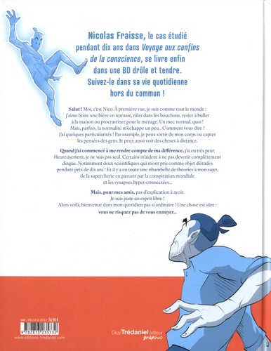 Salut ! Moi, c'est Nico. A première vue, je suis comme tout le monde : j'aime boire une bière en terrasse, râler dans les bouchons, rester à buller à la maison ou procrastiner pour le ménage. Un mec normal, quoi ! Mais parfois, la normalité m'échappe un peu... Comment vous dire ? J'ai quelques particularités ! Par exemple, je peux sortir de mon corps ou capter les pensées des gens. Je peux aussi voir des choses à distance. Quand j'ai commencé à me rendre compte de ma différence, j'ai eu très peur. Heureusement, je ne suis pas seul. Certains m'aident à ne pas devenir complètement dingue. Notamment deux scientifiques qui m'ont pris comme objet d'études pendant près de dix ans ! Et il y a eu toute une ribambelle de théories à mon sujet, de la supercherie en passant par la conspiration mondiale et les synapses hyper-connectées... Mais, pour mes amis, pas d'explication à avoir. Je suis juste un esprit libre ! Alors voilà, bienvenue dans mon quotidien pas si ordinaire ! Une chose est sûre : vous ne risquez pas de vous ennuyer...