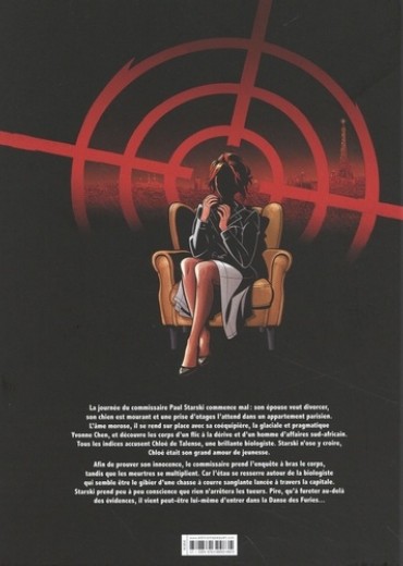 La journée du commissaire Paul Starski commence mal : son épouse veut divorcer, son chien est mourant et une prise d'otages l'attend dans un appartement parisien. L'âme morose, il se rend sur place avec sa coéquipière, la glaciale et pragmatique Yvonne Chen, et découvre les corps d'un flic à la dérive et d'un homme d'affaires sud-africain. Tous les indices accusent Chloé de Talence, une brillante biologiste. Starski n'ose y croire, Chloé était son grand amour de jeunesse. Afin de prouver son innocence, le commissaire prend l'enquête à bras le corps, tandis que les meurtres se multiplient. Car l'étau se resserre autour de la biologiste qui semble erre le gibier d'une chasse à courre sanglante lancée à travers la capitale. Starski prend peu à peu conscience que rien n'arrêtera les tueurs. Pire, qu'à fureter au-delà des évidences, il vient peut-être lui-même d'entrer dans la Danse des Furies...