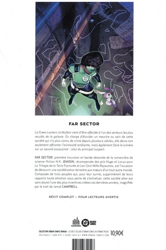 La Green Lantern Jo Mullein vient d'être affectée à l'un des secteurs les plus reculés de la galaxie. En charge d'élucider un meurtre au sein de cette société qui n'a plus connu de crime depuis plusieurs siècles, elle devra non seulement affronter l'animosité ambiante, mais également faire la lumière sur un second assassinat : celui du principal suspect. Far Sector, première incursion en bande dessinée de la romancière de science-fiction N.K. Jemisin, récompensée des prix Hugo et Locus pour Lo Trilogie de la Terre Fracturée et Les Cent Mille Royaumes, est l'occasion de découvrir une société extra-terrestre aux moeurs d'un tout autre monde. Composée de trois peuples qui, pour leur survie, supprimèrent de leurs rapports toute émotion sous peine de s'entretuer, cette société alien est sans doute l'une des plus inventives créées ces dernières années, magnifiée par le trait de Jamal Campbell.