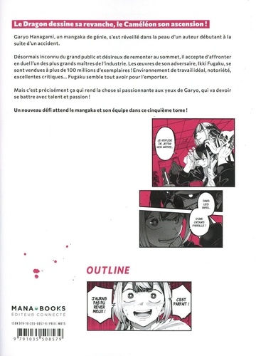 Le Dragon dessine sa revanche, le Caméléon son ascension ! Garyo Hanagami, un mangaka de génie, s'est réveillé dans la peau d'un auteur débutant à la suite d'un accident. Désormais inconnu du grand public et désireux de remonter au sommet, il accepte d'affronter en duel l'un des plus grands maîtres de l'industrie. Les oeuvres de son adversaire, Ikki Fugaku, se sont vendues à plus de 100 millions d'exemplaires ! Environnement de travail idéal, notoriété, excellentes critiques... Fugaku semble tout avoir pour l'emporter. Mais c'est précisément ça qui rend la chose si passionnante aux yeux de Garyo, qui va devoir se battre avec talent et passion ! Un nouveau défi attend le mangaka et son équipe dans ce cinquième tome !
