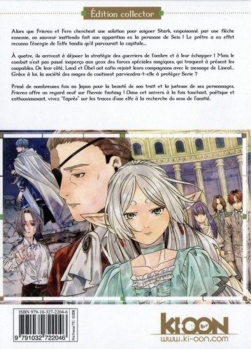 Alors que Frieren et Fern cherchent une solution pour soigner Stark empoisonné par une flèche ennemie, sauveur inattendu fait son apparition en la personne de Sein ! Le prêtre a en effet reconnu l'énergie de l'elfe tandis qu'il parcourait la capitale... A quatre, ils arrivent à déjouer la stratégie des guerriers de l'ombre et à leur échapper ! Mais le combat n'est pas passé inaperçu aux yeux des forces spéciales magiques, qui traquent à présent les coupable. De leur côté, Land et Übel ont enfin rejoint leurs compagnons avec le message de Lineal... Grâce à lui, la société des mages du continent parviendra-t-elle à protéger Serie ? Primé de nombreuses fois au Japon pour la beauté de son trait et la justesse de ses personnages, Frieren offre un regard neuf sur l'heroic fantasy ! Dans cet univers à la fois touchant, poétique et enthousiasmant, vivez "l'après" sur les traces d'une elfe à la recherche du sens de l'amitié.