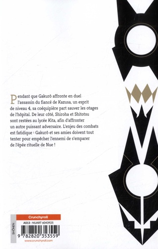 Pendant que Gakurô affronte en duel l'assassin du fiancé de Kazusa, un esprit de niveau 4, sa coéquipière part sauver les otages de l'hôpital. De leur côté, Shiroha et Shitotsu sont restées au lycée Kita, afin d'affronter un autre puissant adversaire. L'enjeu des combats est fatidique : Gakurô et ses amis doivent tout tenter pour empêcher l'ennemi de s'emparer de l'épée rituelle de Nue !