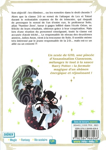 Son objectif : les éliminer... ou les remettre dans le droit chemin ? Alors que la classe 2-D se remet de l'attaque de Lex et Totori durant le redoutable examen de fin de trimestre, qui risquait de provoquer le renvoi de l'un d'entre eux, le professeur Solo, alias "Number Zero", tueur à gages infiltré dans l'école Orion, se félicite de leurs résultats, obtenus grâce à leur coopération. Mais lors d'une réunion du personnel enseignant, toute la classe est accusée d'avoir triché... Le responsable de niveau des deuxièmes années, Julios Anon, vient à la rescousse de Solo. Il semble même très intéressé par le jeune responsable de la 2-D... mais est-ce un allié ou un ennemi ? !