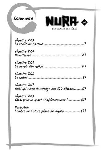 Le sang des démons coule dans ses veines ! Ryûji est prêt à tout pour trouver l'entrée du château d'Aoi-rasen ! Pendant ce temps, Rikuo et son cortège se préparent au combat décisif contre les Gokadoin, descendants de Seimei... ! ! Nous entamons le dernier épisode de la série, qui se déroule au château d'Aoi-rasen ! ! En bonus, un hors-série inédit mettant en scène Rihan, le 2e commandant ! !