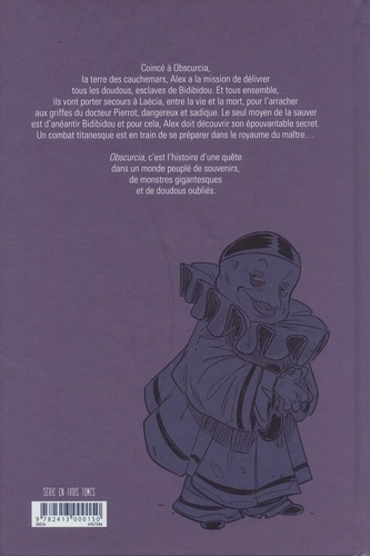 Obscurcia, c'est le monde de Toy Story infecté par les miasmes nauséabonds du clown maléfique de ça. C'est un univers onirique et horrifique. C'est surtout le cauchemar que doit traverser Alex pour sauver sa petite soeur. Bidibidou prétend qu'il peut soigner la pauvre Laécia mais Alex se méfie de cet horrible clown, de son médecin sadique et ses doudous esclaves. Le kiki, à qui il vient de découdre la bouche, compte pourtant sur lui pour les sauver tous et, lors d'une altercation avec les robots de Bidibidou, Alex se découvre de nouvelles capacités. Cela suffira-t-il à changer la donne pour sauver sa petite soeur Nina ?