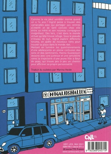 Comme la vie peut sembler morne quand on a 14 ans ! Ingrid peine à trouver des camarades avec qui partager ses centres d'intérêt et se sent coincée chez elle entre sa mère et son nouveau compagnon insignifiant. Dès lors, c'est dans le monde virtuel qu'elle trouve refuge. Sous le pseudo d'Oiseau de nuit, Ingrid explore différents forums, en quête de nouveaux liens pour trouver sa place dans le monde réel.