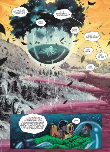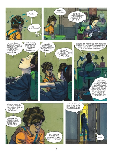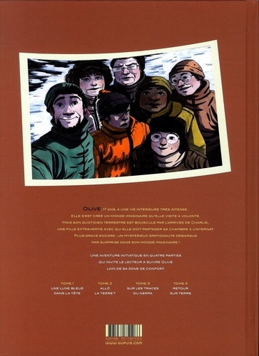 Olive, 17 ans, a une vie intérieure très intense. Elle s'est crée un monde imaginaire qu'elle visite à volonté. mais son quotidien terrestre est bousculé par l'arrivée de Charlie, une fille extravertie avec qui elle doit partager sa chambre à l'internat. Plus grave encore : un mystérieux spationaute débarque par surprise dans son monde imaginaire ! Une aventure initiatique en quatre parties qui invite le lecteur à suivre Olive loin de sa zone de confort.