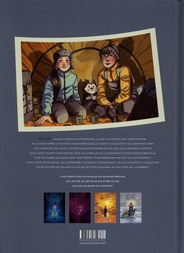 Olive, c'est l'histoire d'une fille de 17 ans, très timide et renfermée mais à l'imagination débordante. Un jour, dans le monde onirique qu'elle s'est créé au fil des années débarque Lenny, un spationaute blessé et malade. Que fait donc cet homme dans son espace réservé où personne n'est jamais invité ? Olive est encore plus perturbée quand elle se rend compte que Lenny existe vraiment dans la vie réelle et que la capsule qui le ramenait d'une mission spatiale s'est écrasée quelque part sur terre. Mais personne ne sait où précisément. Avec l'aide de Charlie, sa nouvelle compagne d'internat très extravertie, Olive va devoir se faire violence pour sortir de sa zone de confort et partir à l'aventure pour tenter de sauver la vie de Lenny. Mais avant ça, elle devra affronter les secrets et le drame qui entourent sa naissance. Une aventure initiatique en quatre tomes avec une jeune héroïne introvertie qui va devoir s'ouvrir au monde pour partir sauver un spationaute au fin fond de la Sibérie.