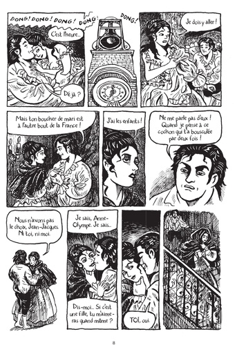 De Montauban en 1748 à l'échafaud parisien en 1793, quarante-cinq ans d'une vie féminine hors normes, et l'invention d'une idée neuve en Europe : la lutte pour les droits des femmes. Née dans une famille bourgeoise de province, sans doute fille adultérine d'un dramaturge à particule, Marie Gouze dite Olympe de Gouges a traversé la seconde moitié du XVIIIe siècle comme peu de femmes l'ont fait. Femme de lettres et polémiste engagée, elle se distingue par son indépendance d'esprit et l'originalité parfois radicale de ses vues, s'engageant pour l'abolition de l'esclavage et surtout pour les droits civils et politiques des femmes. Opposée aux Robespierristes et aux ultras de la Révolution, elle est guillotinée pendant la Terreur. Comme ils l'avaient fait avec Kiki de Montparnasse, Catel et Bocquet retracent de façon romancée, mais avec une rigueur historique constante, le parcours de vie de cette femme d'exception, dont les idéaux très en avance sur son temps ont forgé quelques-unes des valeurs clés de nos sociétés d'aujourd'hui. En quelque trois cent planches de création exigeante et généreuse, un magnifique portrait féminin et un hommage vibrant à l'une des figures essentielles du féminisme.