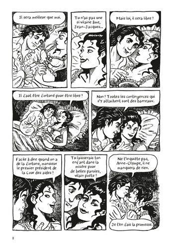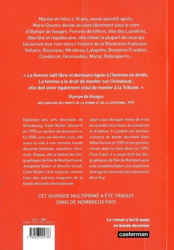 Mariée et mère à 18 ans, veuve aussitôt après, Marie Gouzes décide ensuite de vivre librement sous le nom d'Olympe de Gouges. Femme de lettres, fille des Lumières, libertine et républicaine, elle côtoie la plupart de ceux qui laisseront leur nom dans l'histoire de la Révolution française : Voltaire, Rousseau, Mirabeau, Lafayette, Benjamin Franklin, Condorcet, Desmoulins, Marat, Robespierre...