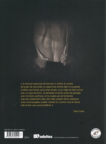 "Je recevais beaucoup de réactions à Ombre & Lumière de la part de mes amies, et quand l'une d'entre elles m'a proposé d'utiliser une histoire qui lui était arrivée, j'ai eu l'idée de faire un livre avec ce type de récits. J'ai demandé à d'autres amies de partager avec moi leurs aventures. Je ne voulais pas de fantasmes, mais des événements réels, dont elles auraient été le catalyseur. Je les ai encouragées à parler crûment et, comme vous le verrez, cela ne leur a pas posé problème." Parris Quinn.