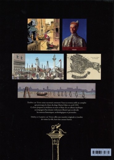 Ténèbres sur Venise nous racontait comment Vasco se trouva mêlé au complot qui provoqua la chute du doge Marin Falier en avril 1355. Ce livre propose la réédition en noir et blanc de cet album mythique accompagné d'un dossier richement illustré qui en dévoile les sources historiques, archéologiques et picturales. Ombres et Lumières sur Venise offre une manière originale et insolite de visiter la ville, hors des canaux battus.