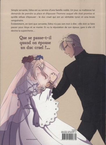 Simple servante, Edna est au service d'une famille noble. Un jour, sa maîtresse lui demande de prendre sa place et d'épouser l'homme auquel elle était promise et quelle refuse d'épouser : le duc cruel qui est un véritable tyran et une brute sanguinaire. Evidemment, en tant que servante, Edna n'a pas son mot à dire : elle doit se faire passer pour Anya et se marier. Et vu la réputation de son époux, gare à elle s'il devine la supercherie... Que se passe-t-il quand on épouse un duc cruel ?