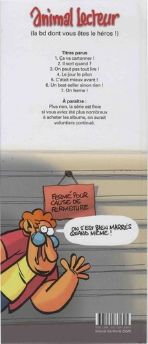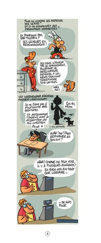 Il y a des symptômes qui ne trompent pas : quand un être cher au libraire de BD-Boutik, au bout du rouleau, qui comptait tant pour lui, rend l'âme (sa caisse enregistreuse...) ; quand un acheteur lui demande s'il a les idées noires et que le libraire se répand sur ses angoisses quant à l'avenir de son petit commerce avant de se rendre compte qu'on veut juste lui acheter le célèbre album d'humour noir de Franquin ; quand le libraire fonce à travers la ville avec son scooter et trois BD sous le bras pour tenter de concurrencer Amazon ; quand le libraire, au bord de la faillite, se sent obligé de faire son coming-out ("Je n'ai jamais lu Le mystère de la grande pyramide ! "). Quand on en arrive là, c'est que les choses vont mal ! Car "Libraire de bande dessinée, c'est pas un métier, c'est une vocation, un sacerdoce ! " répètent, pour ceux qui ne l'auraient pas encore compris en lisant les six tomes précédents, Libon et Salma à travers 92 strips verticaux hilarants. Un métier qu'on peut même faire à perte par passion... pendant un certain temps... Un ouvrage à conseiller à tous ceux qui veulent en savoir plus sur le métier de libraire spécialisé en bande dessinée... ou à tous ceux qui aiment juste rigoler en lisant une bonne BD !