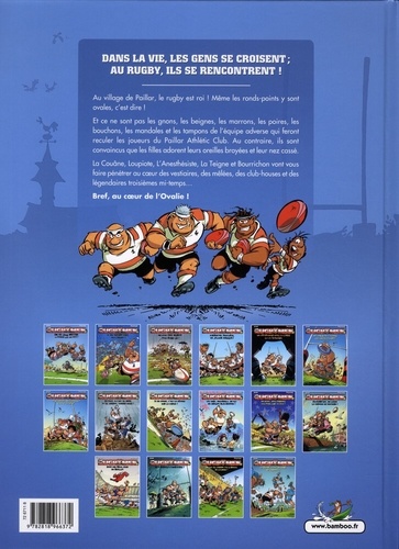 Dans la vie, les gens se croisent ; au rugby, ils se rencontrent ! Au village de Paillas, le rugby est roi ! Même les ronds-points y sont ovales, c'est dire ! Et ce ne sont pas les gnons, les beignes, les marrons, les poires, les bouchons, les mandales et les tampons de l'équipe adverse qui feront reculer les joueurs du Paillar Athletic Club. Au contraire, ils sont convaincus que les filles adorent leurs oreilles broyées et leur nez cassé. La Couâne, Loupiote, L'Anesthésiste, La Teigne et Bourrichon vont vous faire pénétrer au coeur des vestiaires, des mêlées, des club-houses et des légendaires troisièmes mi-temps... Bref, au coeur de l'Ovalie !