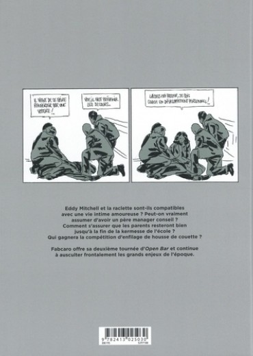 Eddy Mitchell et la raclette sont-ils compatibles avec une vie intime amoureuse ? Peut-on assumer le fait d'avoir un père manager conseil ? Comment s'assurer que les parents resteront bien jusqu'à la fin de la kermesse de l'école ? Qui gagnera la compétition d'enfilage de housse de couette ? Des questions fondamentales auxquelles Fabcaro apporte une réponse implacable, surprenante et finalement évidente.