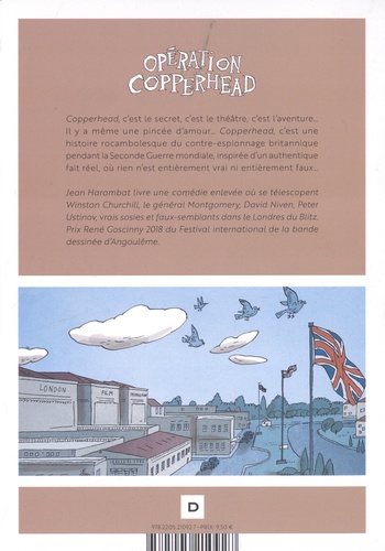 Opération Copperhead, c'est une histoire aussi vraie que rocambolesque du contrespionnage britannique pendant la Seconde Guerre mondiale. A partir d'un fait réel, Jean Harambat crée de toutes pièces une histoire d'une inventivité folle et réalise un pastiche désopilant et fantaisiste de trois protagonistes : les comédiens David Niven, Peter Ustinov et Clifton James. Il s'agit, selon une idée de Winston Churchill, de recruter et de former un sosie (Meyrick Edward Clifton James) pour jouer le rôle du général Montgomery ? le général des forces alliées, alors surveillé par les nazis ? et ainsi induire en erreur l'ennemi quant au lieu réel du Débarquement. Dans le même temps, alors que la capitale anglaise subit le Blitz, la vie se déploie dans les cabarets où officie une vénéneuse ? et néanmoins charmante ? jeune femme, Vera. Cette histoire burlesque où rien n'est entièrement vrai ni entièrement faux est aussi un hommage au cinéma, notamment à la "comédie sophistiquée" des années 1930 et 1940, avec un dynamisme, un sens de l'à-propos et un flot de dialogues (Lubitsch en était le maître) !