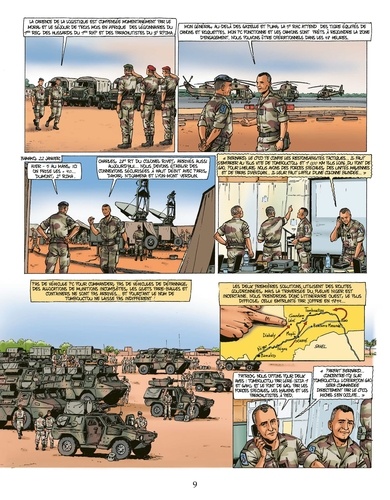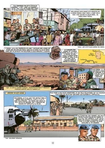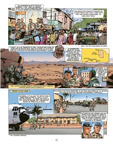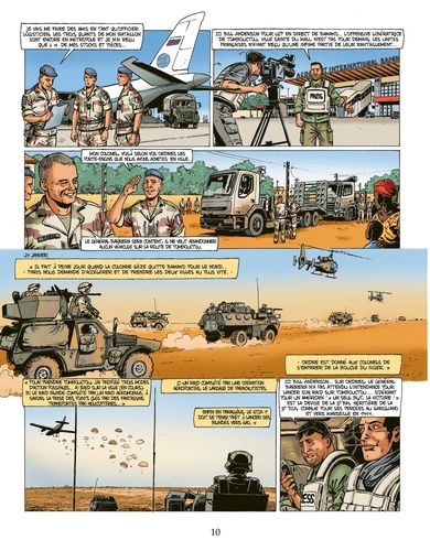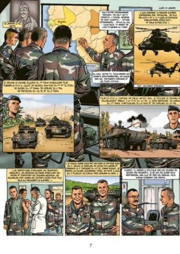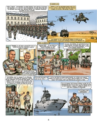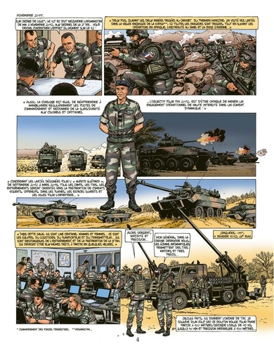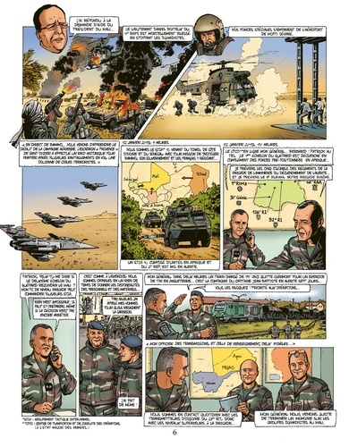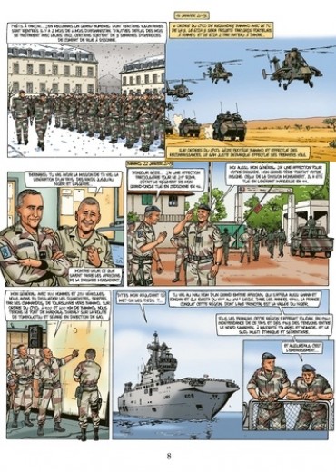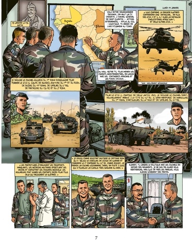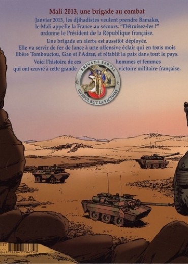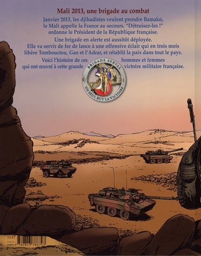 Janvier 2013, les djihadistes veulent prendre Bamako, la stabilité de toute l'Afrique de l'Ouest est menacée, le Mali appelle la France au secours. "Détruisez-les ! " ordonne le Président de la République française. Une brigade en alerte de 4000 hommes est aussitôt déployée. Elle va servir de fer de lance à une offensive éclair qui en trois mois libère Tombouctou, Gao et l'Adrar, et rétablit la paix dans tout le pays. C'est l'opération SERVAL. Voici l'histoire des hommes et des femmes qui ont oeuvré à cette grande victoire militaire française, inédite au XXIème siècle. A propos de l'auteur : Guillaume Berteloot est auteur au Triomphe d'une vingtaine de BD d'histoire militaire : Les Cadets de Saumur, La Grande Guerre 1914-1918 (5 tomes), Leclerc, De Lattre, Hélie de Saint Marc. Patrick Deschamps est producteur audiovisuel spécialiste des sujets historiques. Aux Editions du Triomphe, il a scénarisé une dizaine d'albums, dessinés par Guillaume Berteloot.