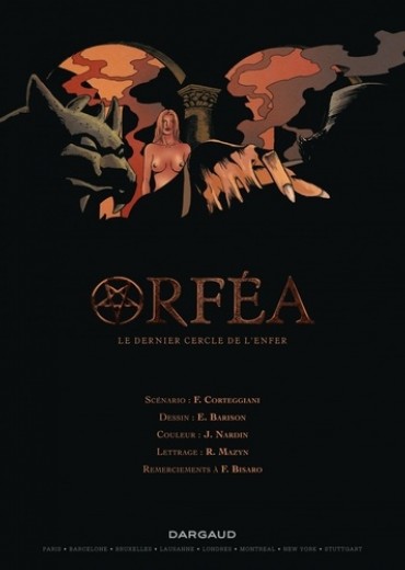 Avec Orféa, une histoire complète, François Corteggiani et Emanuele Barison imaginent une relecture moderne du mythe d'Orphée, y invitant quelques démons et autres créatures infernales... Parce que son fiancé a assassiné de façon incompréhensible un notable avant de se suicider, une jeune femme va devoir franchir les portes de l'Enfer pour empêcher les démons de déferler sur le monde. Le one shot Orféa est un remarquable polar fantastique qui mêle démons, sorciers vaudou et flics de province.