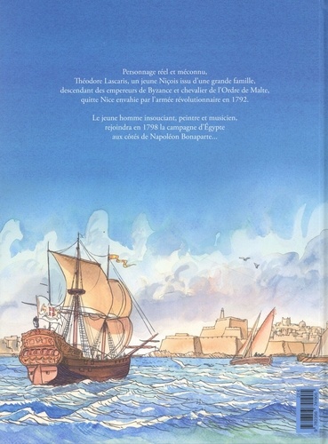 Jacques Ferrandez renoue avec l'aventure historique dans un diptyque magnifiquement mis en couleurs à l'aquarelle, à la façon de ses Carnets d'Orient. Théodore Lascaris, un jeune Niçois issu d'une grande famille, descendant des empereurs de Byzance, quitte Nice envahie par l'armée révolutionnaire en 1792. C'est la biographie romancée d'un jeune homme insouciant, peintre et musicien, qui rejoint en 1798 la campagne d'Egypte aux côtés de Napoléon Bonaparte...